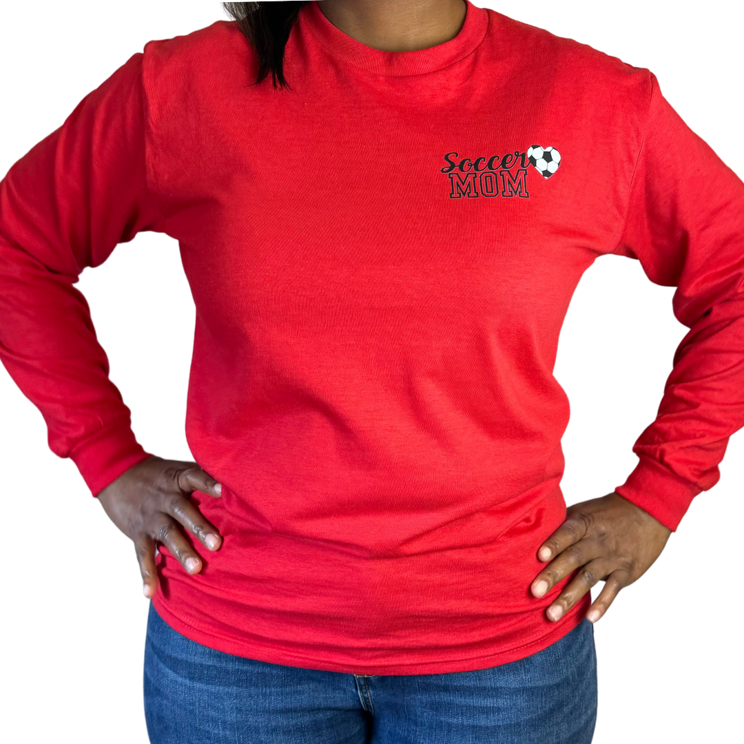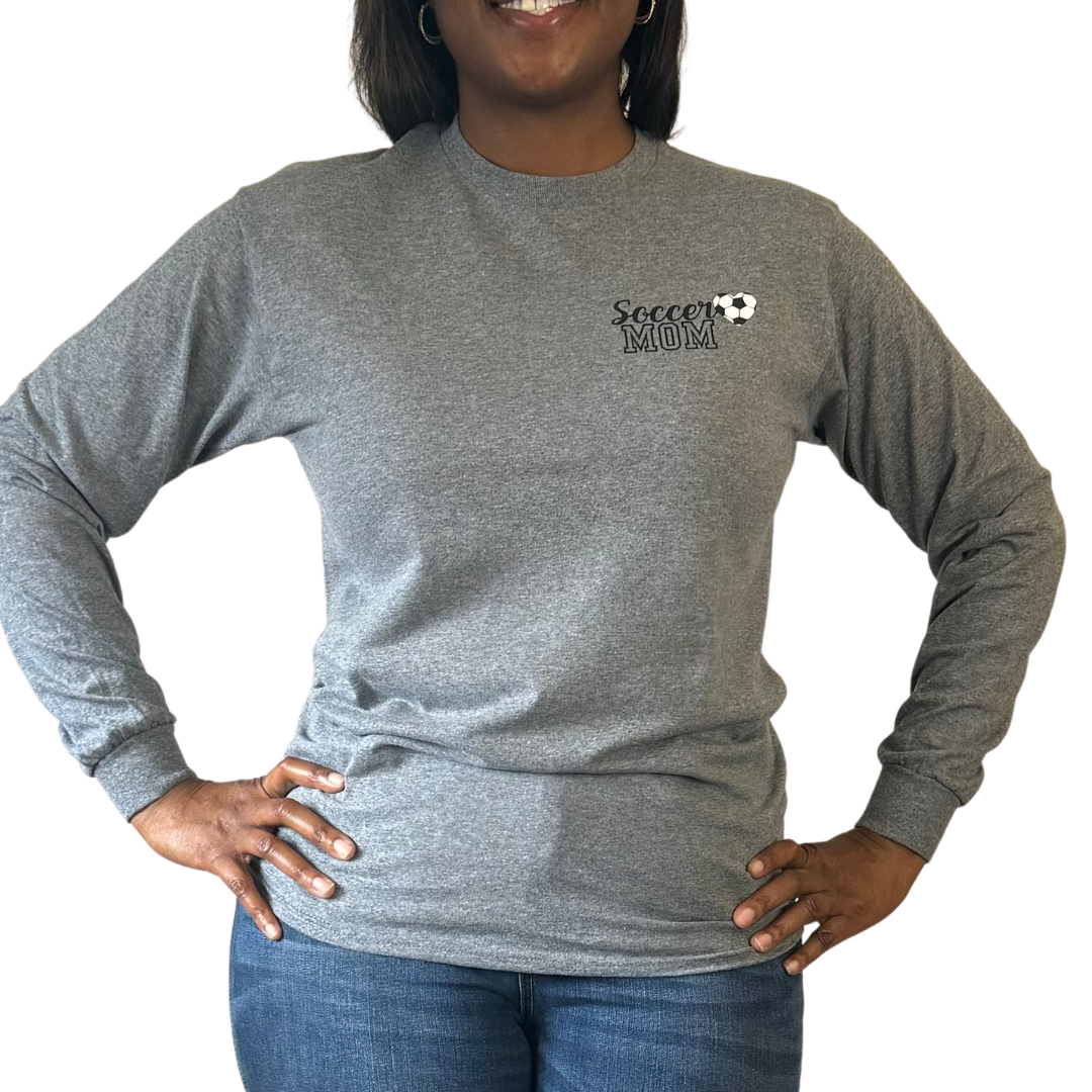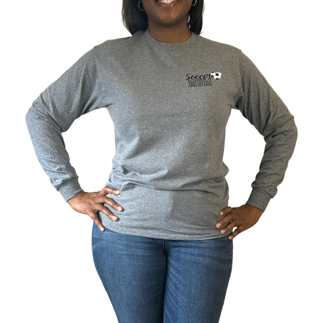 - Front Design: The bold phrase "Soccer Mom" displayed prominently to showcase your unwavering support.