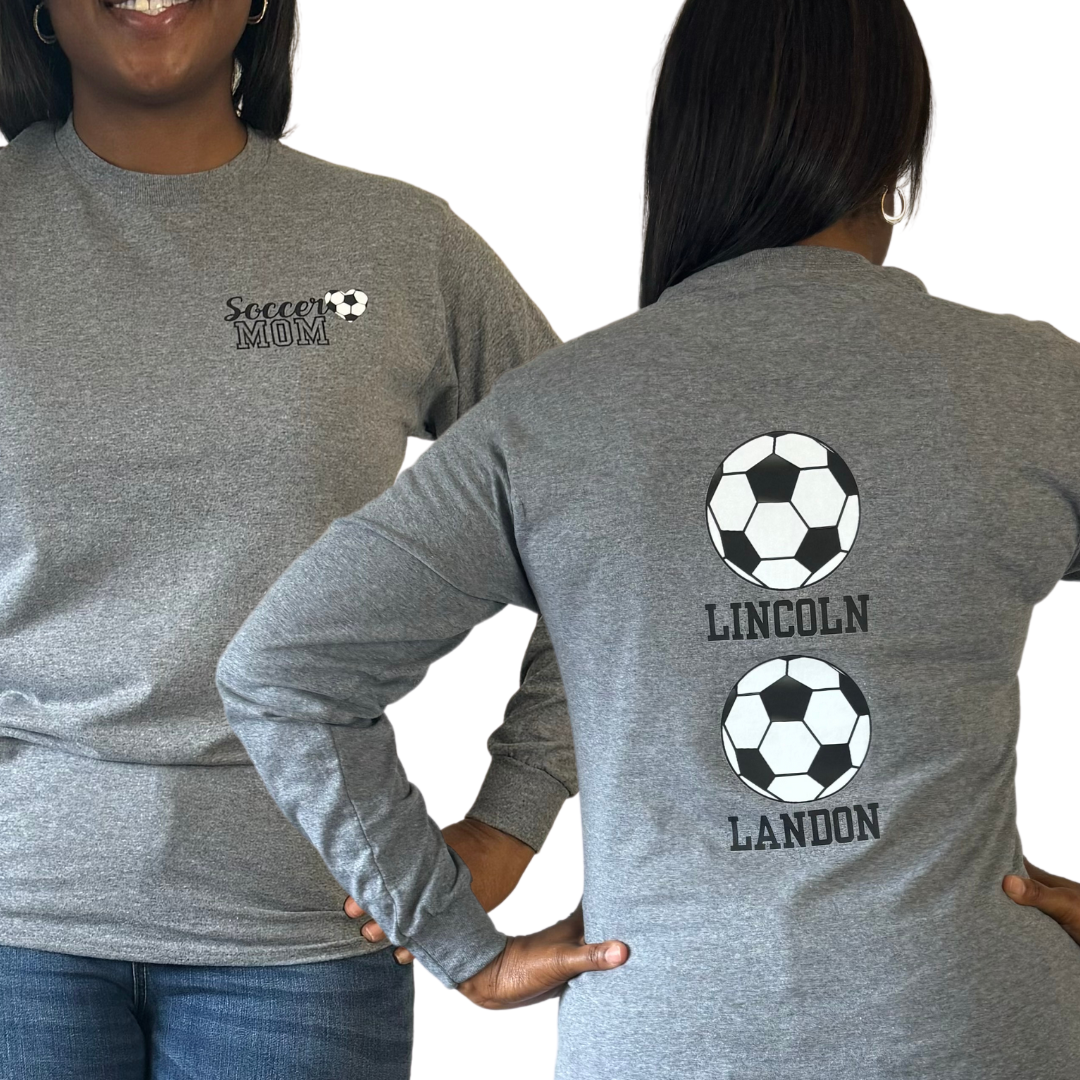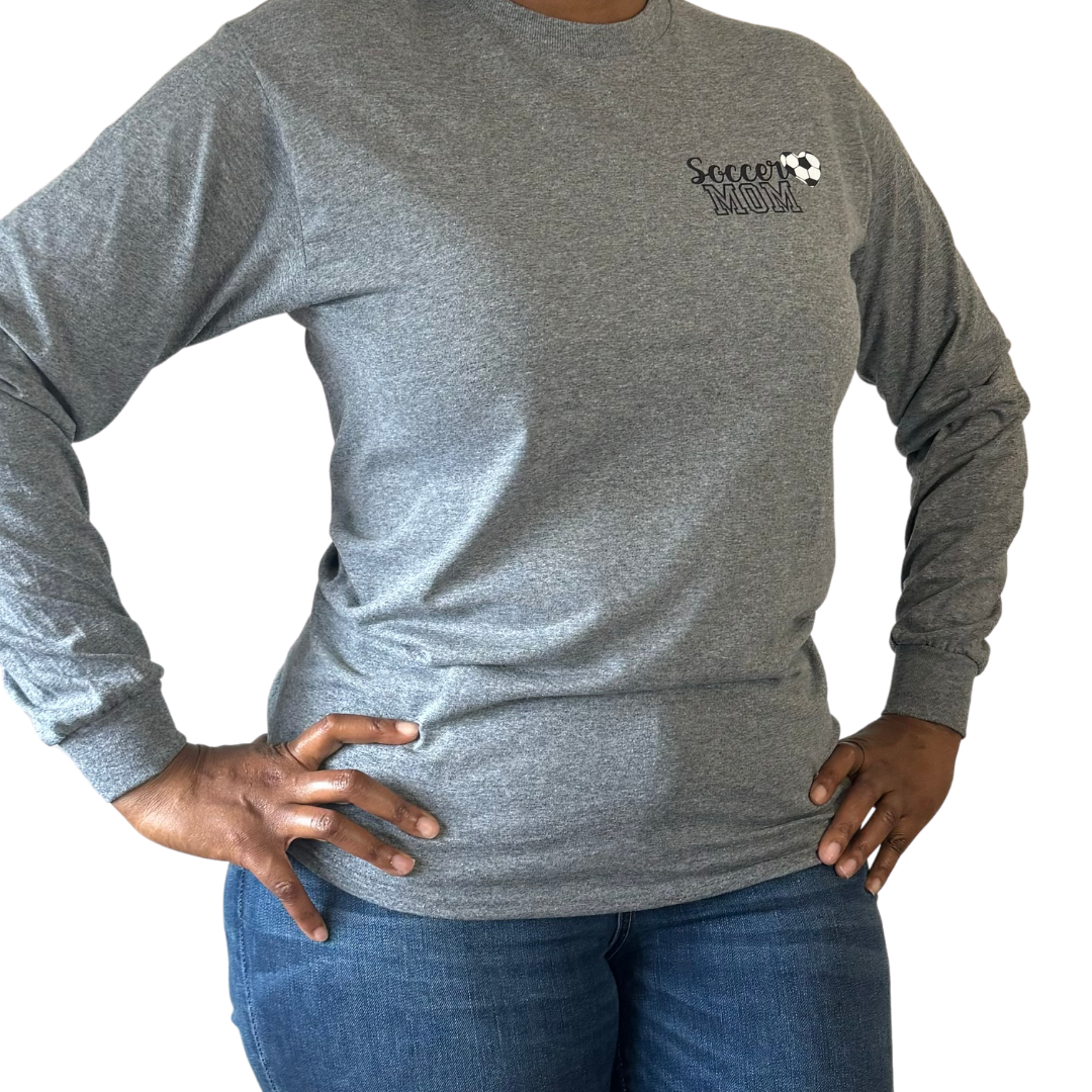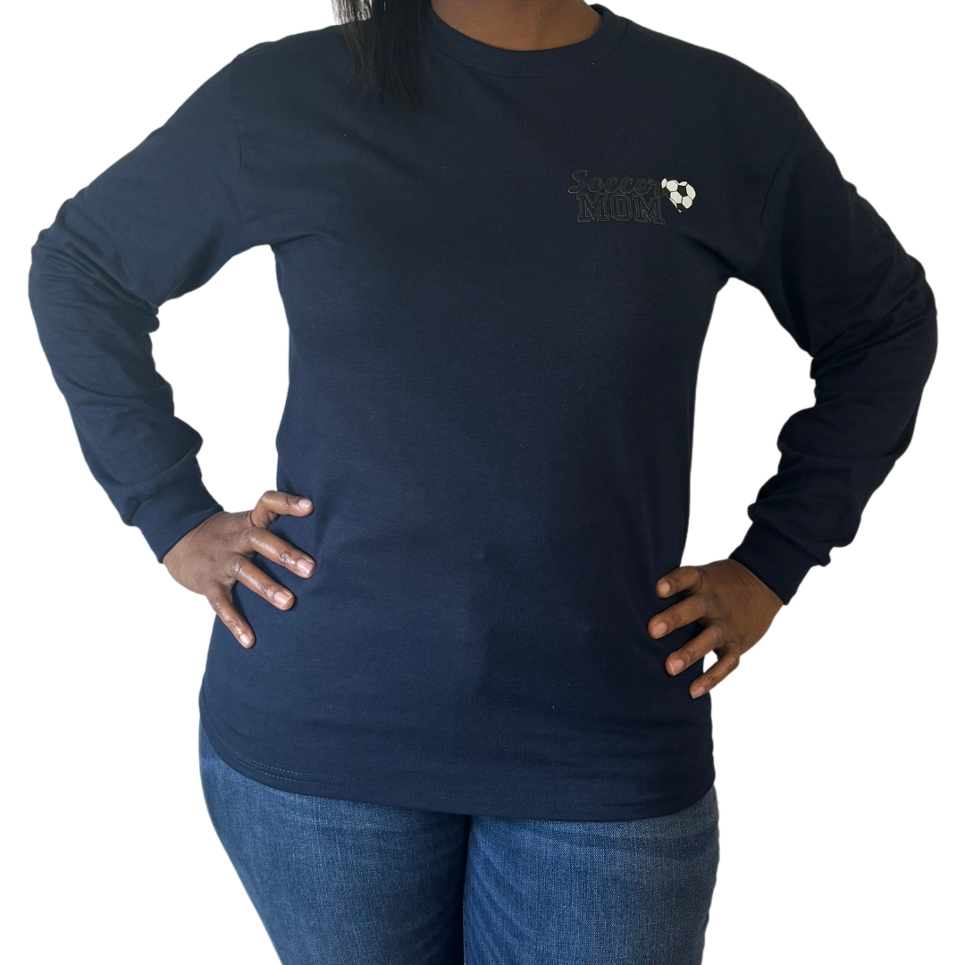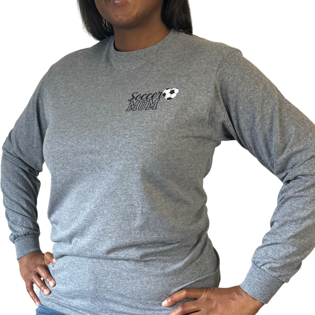 - Front Design: The bold phrase "Soccer Mom" displayed prominently to showcase your unwavering support.